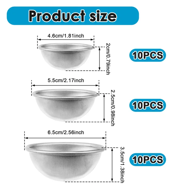 30Pcs Bath Bomb Mold Aluminum Alloy Soap Mold Ball Shape Bath Bomb Moulds Press 6.5/5.5/4.6cm Hemisphere Cake Pan for Bath Bomb