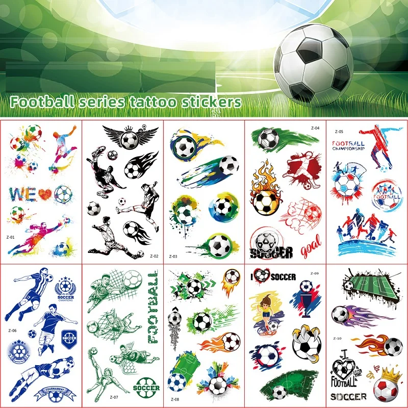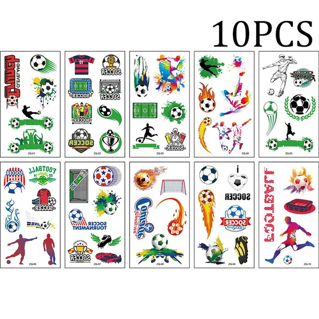 10PCS Temporary Tattoos for Children Football Soccer Fan Fake Tattoo Sticker Temporary Tattoo Sticker Sleeves Waterproof Man Kid