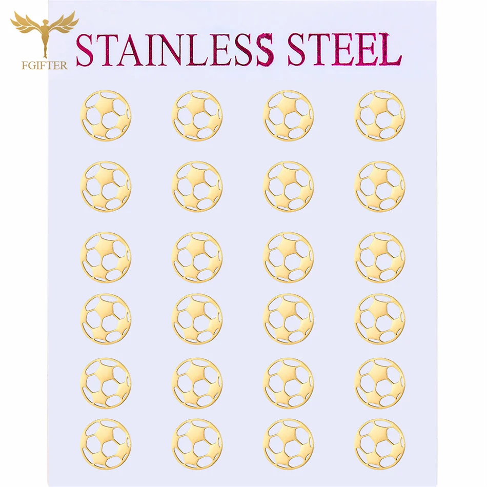 12 Pairs Sport Soccer Stud Earrings for Women Men Teen Girl Football Jewelry Golden Stainless Steel Earrings Set Wholesale Gifts