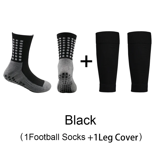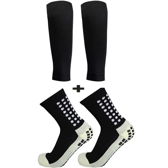 2 Pairs Set Men Grip Soccer Socks and Calf Sleeves Adult Youth Non Slip Leg Cover Guards for Basketball Football Sports Socks