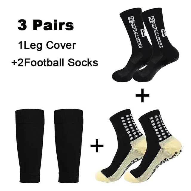 3 Pairs Set Men Grip Soccer Socks and Knee Pads Calf Sleeves Adult Youth Non Slip Leg Shin Guards for Basketball Football Sports