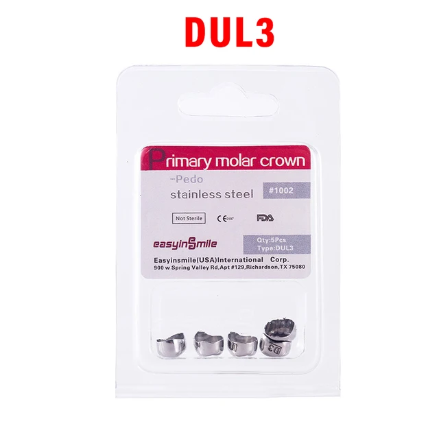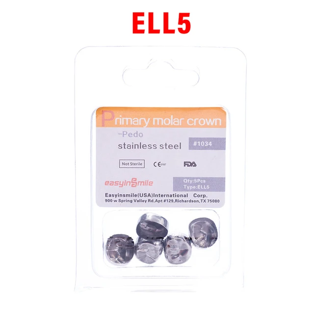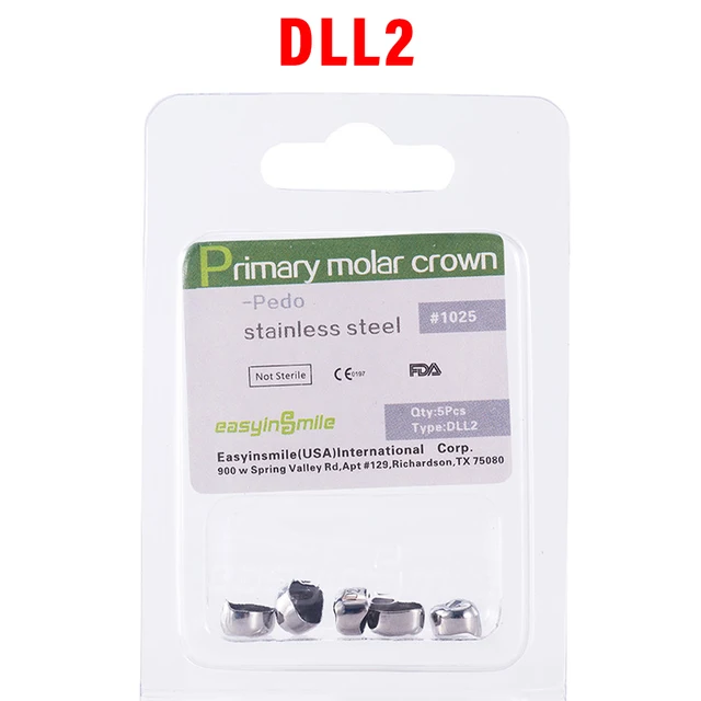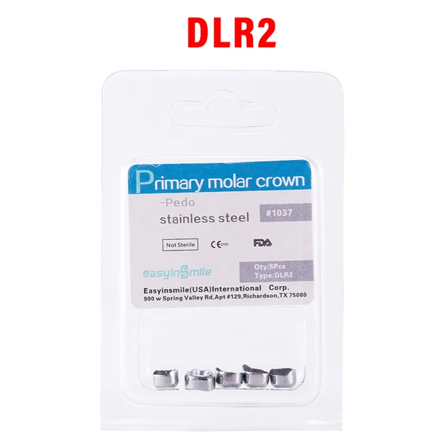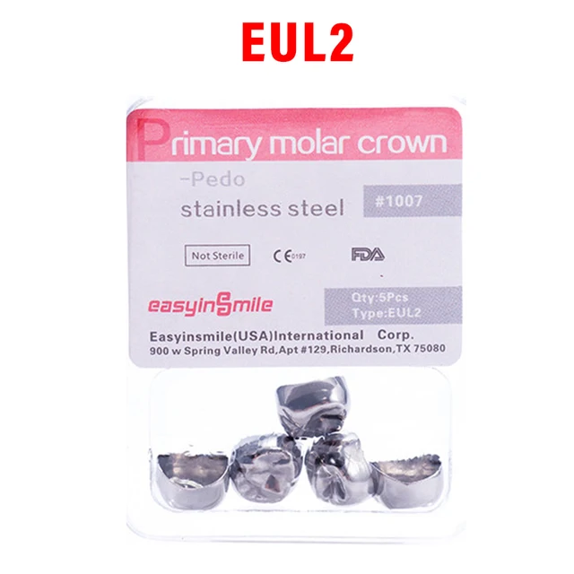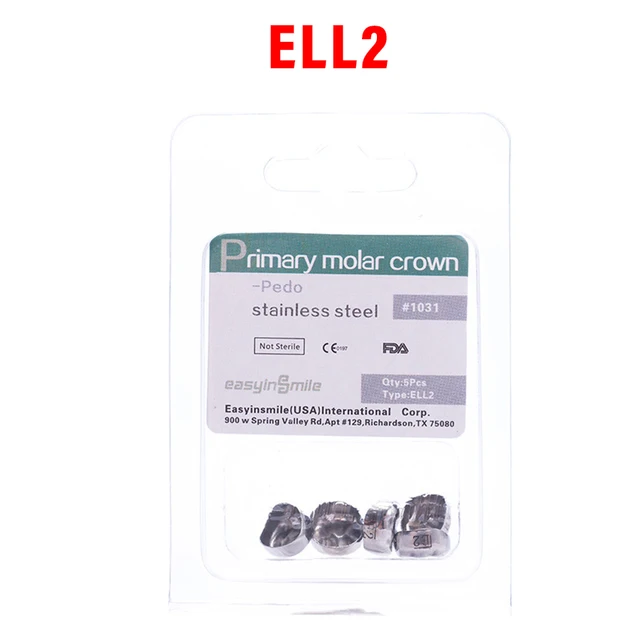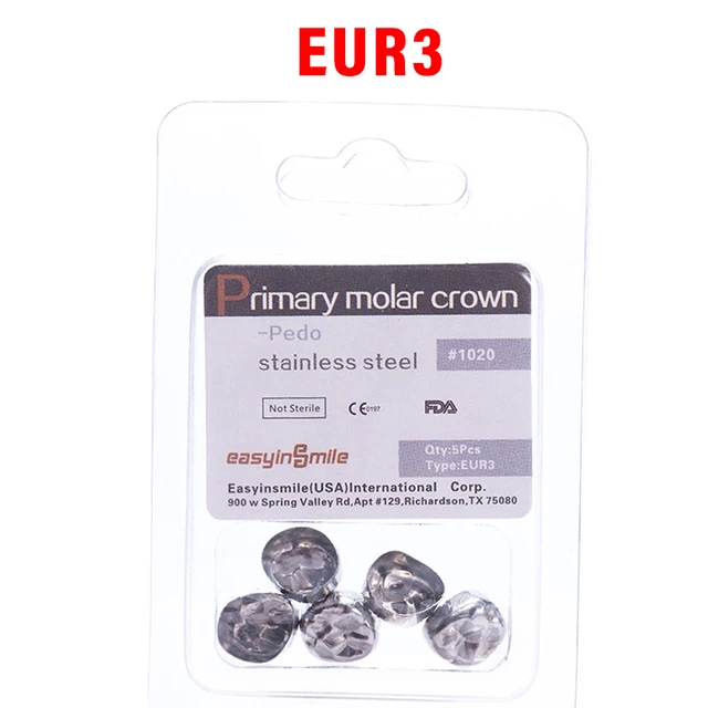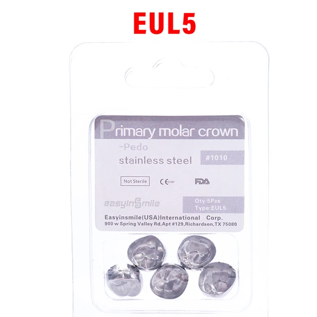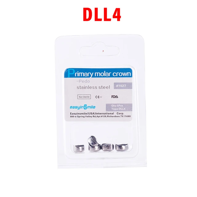 5PCS EASYINSMILE Dental Crown Kids Primary Molar Teeth Refill Stainless Steel Crowns for Upper/Lower Left/Right 1st/2nd D2-D7