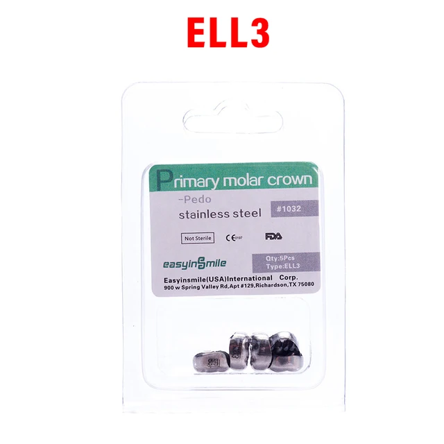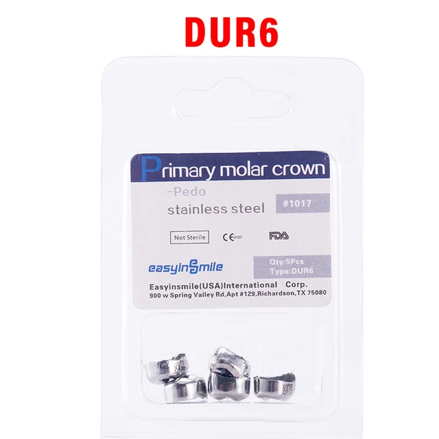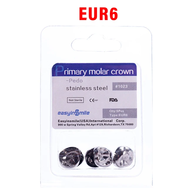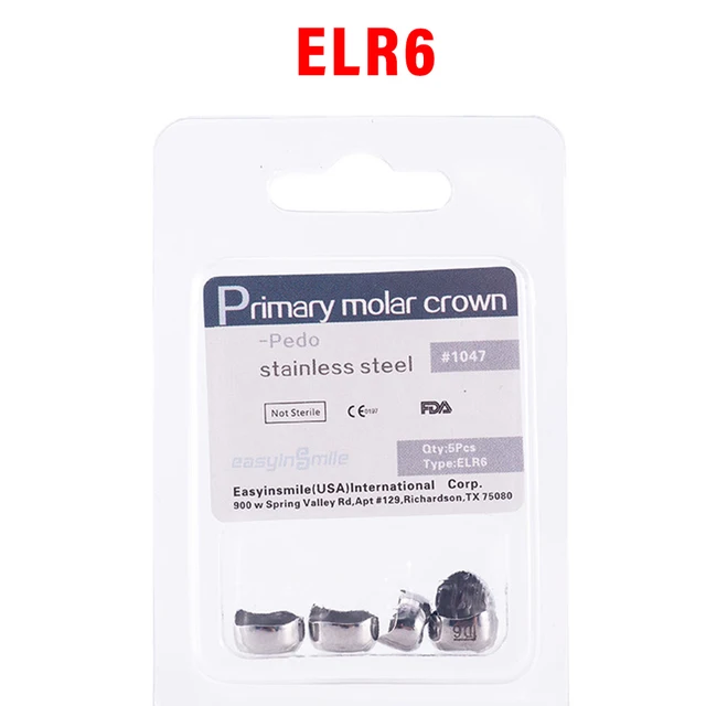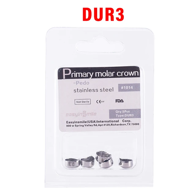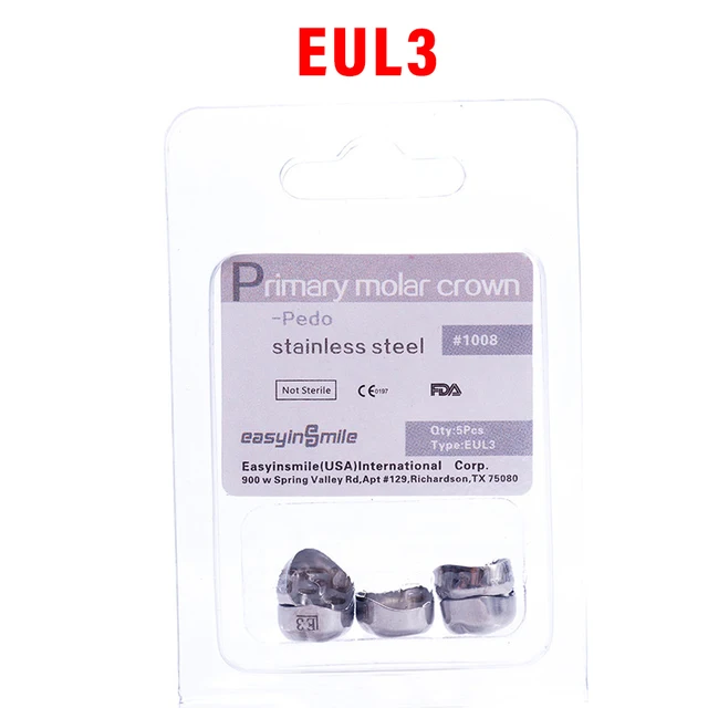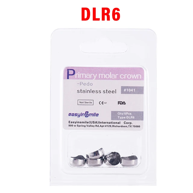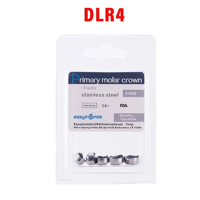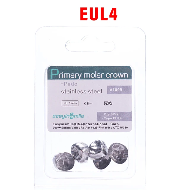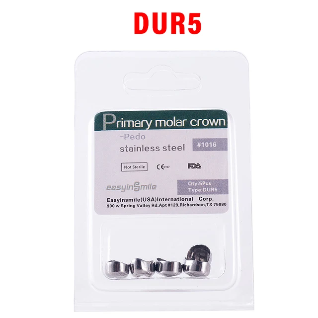 5PCS EASYINSMILE Dental Crown Kids Primary Molar Teeth Refill Stainless Steel Crowns for Upper/Lower Left/Right 1st/2nd D2-D7