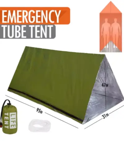 2 Person Emergency Shelter Bivy Survival Tent Kit Mylar Tube Tent Sleeping Bag Waterproof Outdoor SOS Thermal Blanket Reusable