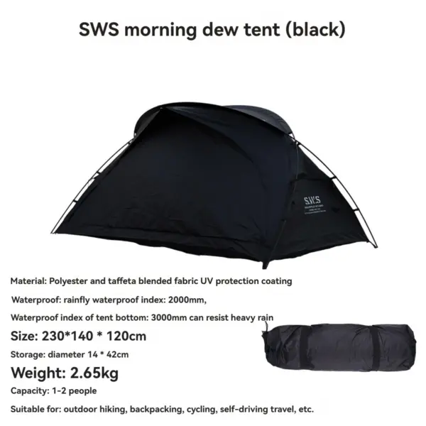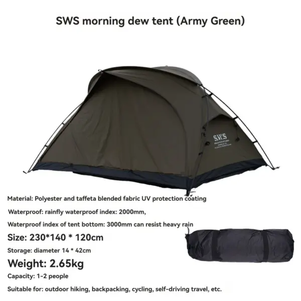 2 People Outdoor Travel Camping Single Layer Tent with Bag for Outdoor Camping Traveling for Summer Spring Autumn 3 Seasons