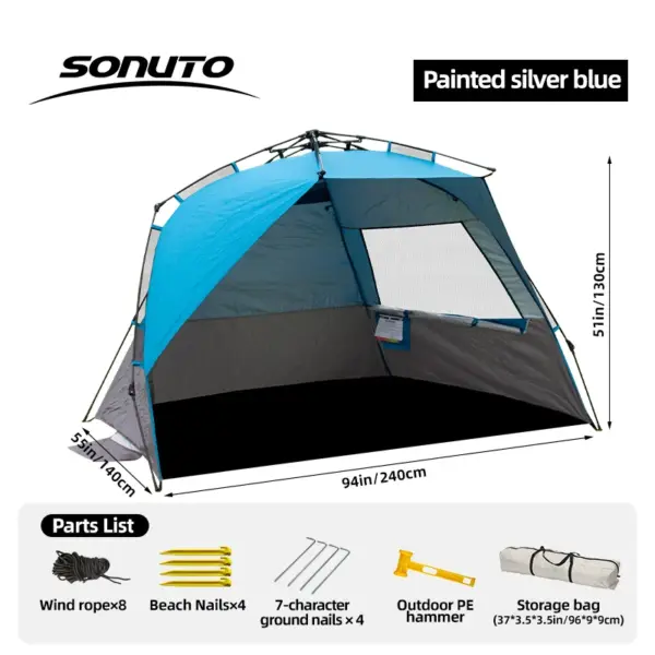 Outdoor 3-4P One-Touch Camping Tent Quick Automatic Opening Beach Fishing Tent Family Travel Picnic Park Anti-UV Shade