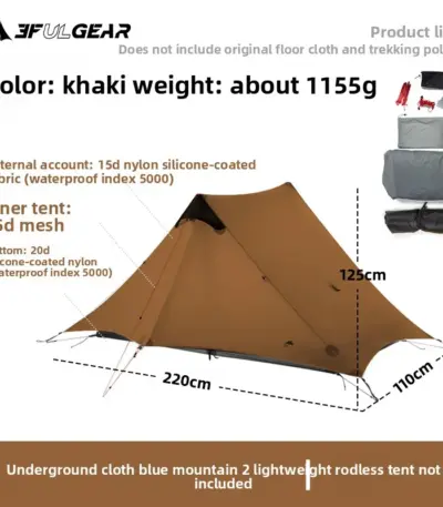 New Version Lanshan 2 1155 Grams 2 Side 20D Silnylon LightWeight 2 Person 3 and 4 Season Backpacking Camping Tent Rodless Design