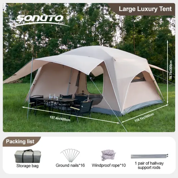 3 Sizes Tent Two-bedroom 1 Living Room Large Family Camping Tent 5-8-12 Person Leisure Camp Tent Rainproof Outdoor Indoor Hourse