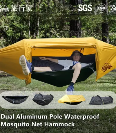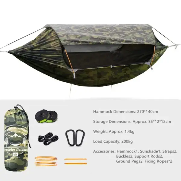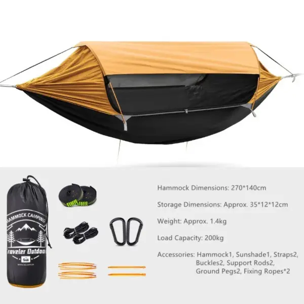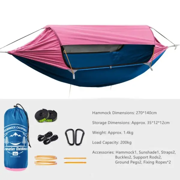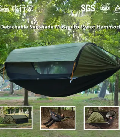 70D Nylon3-in-1 Anti-Roll Camping Hammock with Mosquito Net & Sun Shield – convertible to Swing or Lightweight Ground Tet