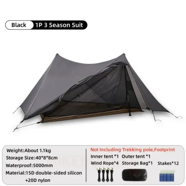Airy Mesh Tent Outdoor camping mosquito-proof single hiking tent lightweight inner tent pole-free tent backpacking 1 person