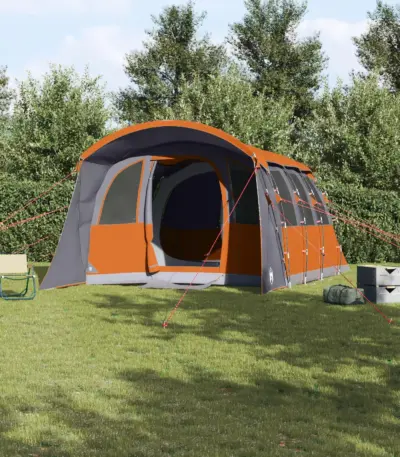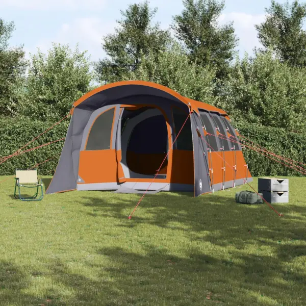 8 Person Family Tent Waterproof with Windows Grey and Orange Durable Outdoor Shelter