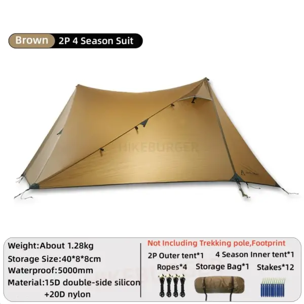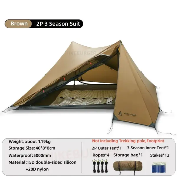 ASTA GEAR Yun Chuan 1P/2P Double-sided Silicon Poleless Tent Camping Ultralight Waterproof Double A-shaped Trekking Nylon Tent