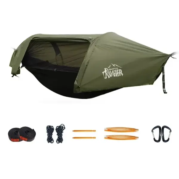 All-in-One Tunnel Mosquito Net + Hammock + Waterproof Rainfly – Tree Tent for Solo Waterproof & Bug-Proof Hiking Camping