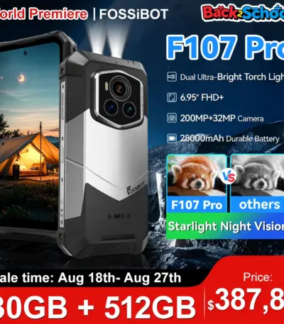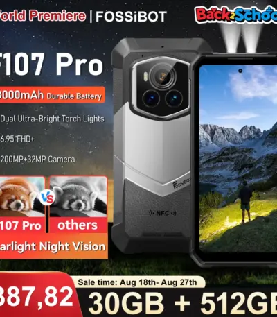 Fossibot F107 Pro Rugged Mobile Phone 30(12+18)Go+512Go Android 15 28000mAh 66W 200MP+32MP 5G NFC/GPS Dual Bright Flashlights