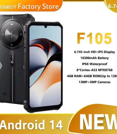 FOSSiBOT F105 Rugged Smartphone Android 14 12GB+64GB Mobile Phone 6.745″ HD+ IPS Display 20MP Camera 10300mAh Cell phone