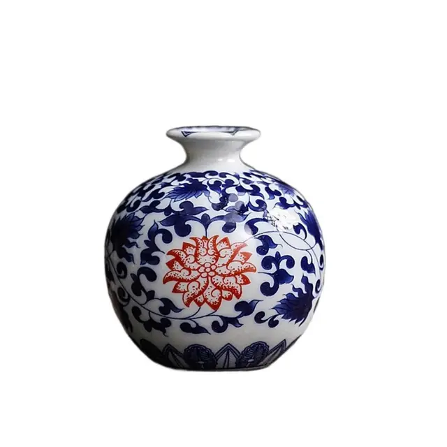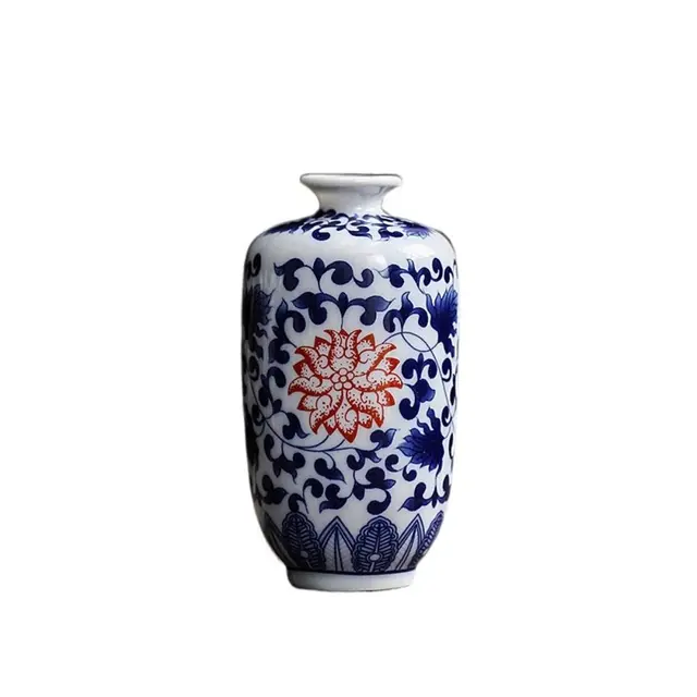 Blue and White Small Porcelain Vases Mini Vintage Ceramic Flower Vase Handmade Strong Chinese Style Desktop Ornament Office