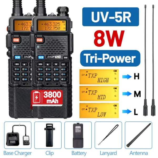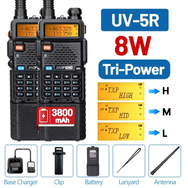 Baofeng UV-5R 8W Walkie Talkie High Power Long Range Two Way Radio Portable Communication Ham Radio For Camping