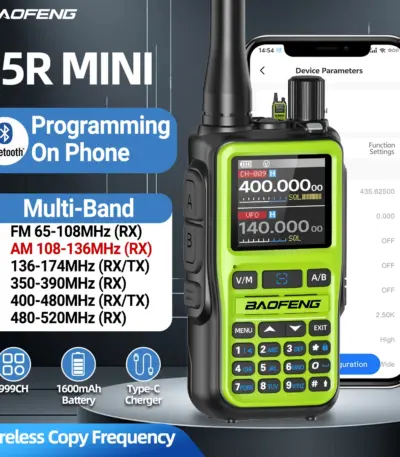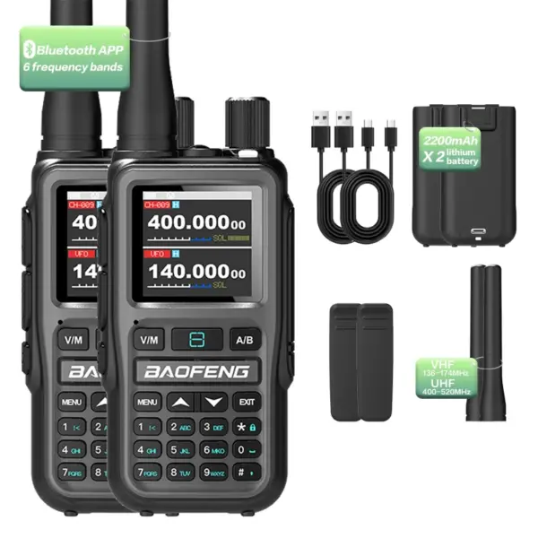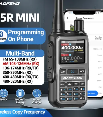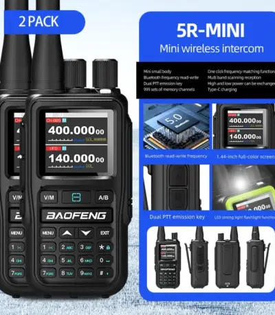 BAOFENG UV-5R Mini Full Band Walkie Talkie Bluetooth Programming Wireless Copy Frequency Type-C Long Range Ham Radio for Camping