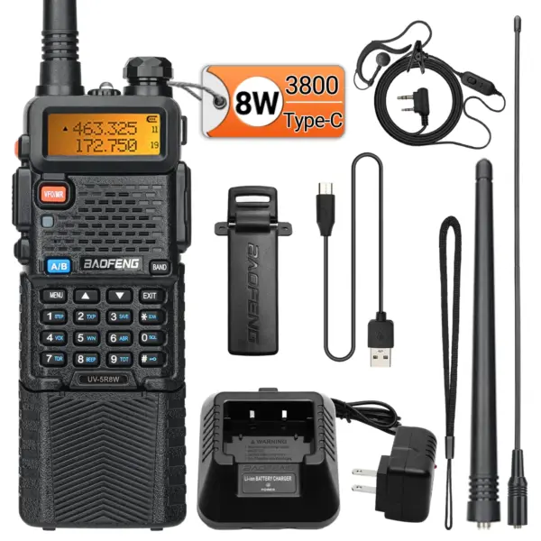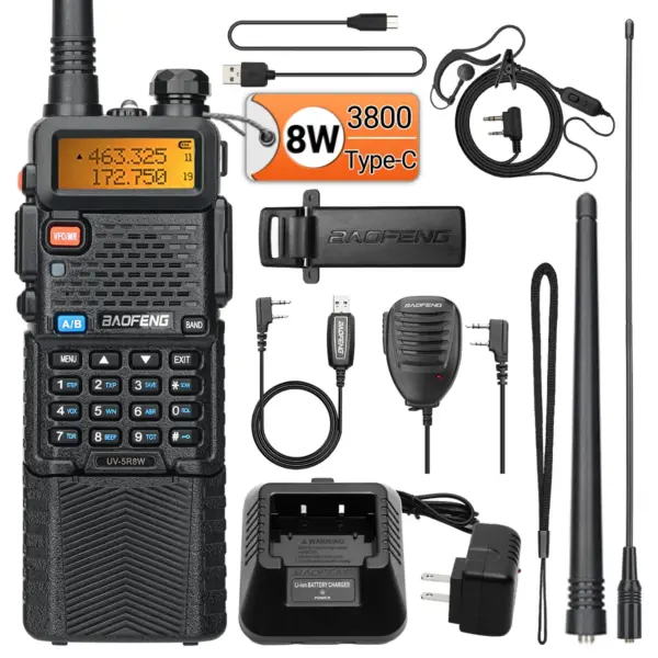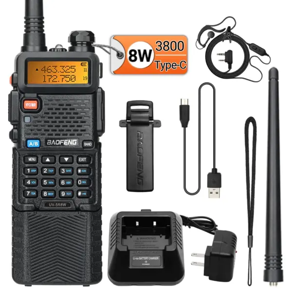 Baofeng UV-5R 8W 3800mAh Walkie Talkie Dual Band Type-C Ham Two Way Radio VHF UHF FM Radio Handheld Transceiver Outdoor Hunting
