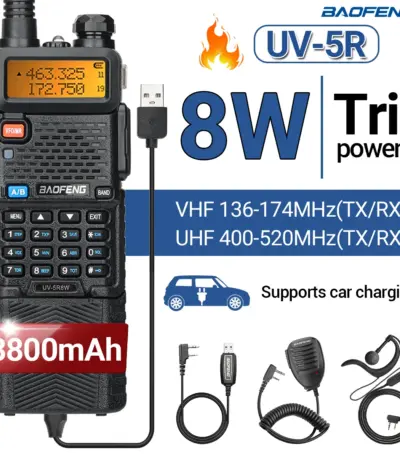 Baofeng UV-5R 8W Walkie Talkie Portable Tri-Power Two Way Radio Communication VHF UHF Receiver Long Range Headset For Camping