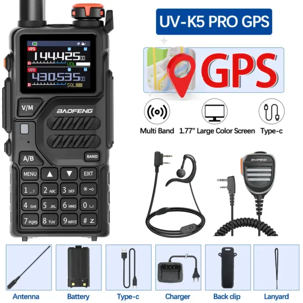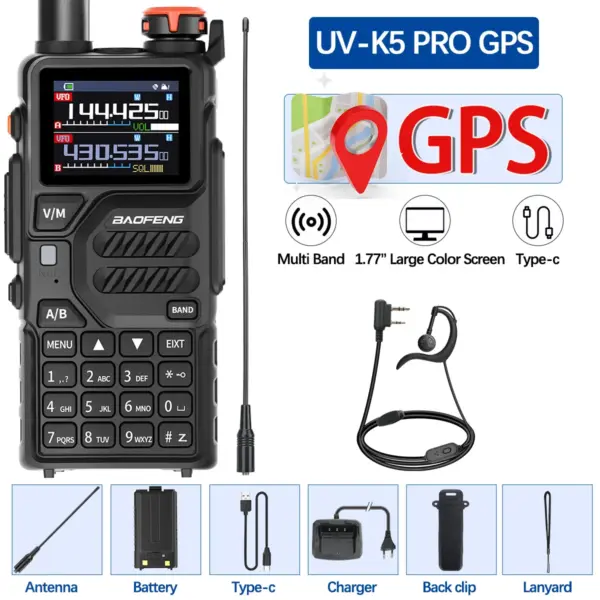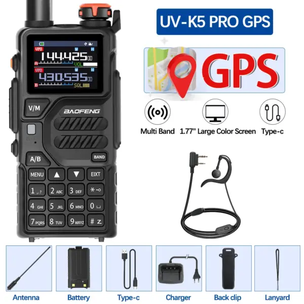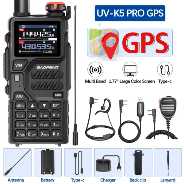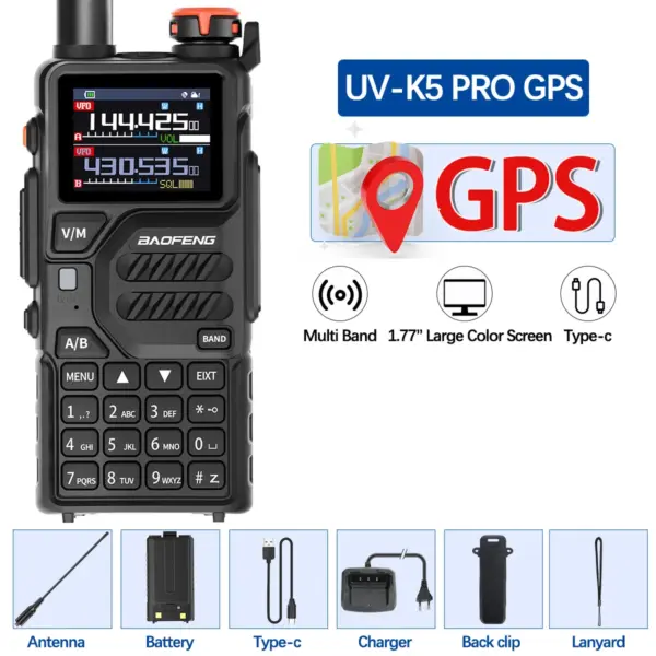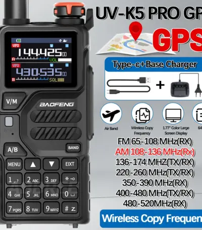 Baofeng UV-K5 PRO GPS Walkie Talkie Wireless Copy Frequency Multi Band AM DTMF Type-c AM FM Long Range NOAA Two Way Ham Radio