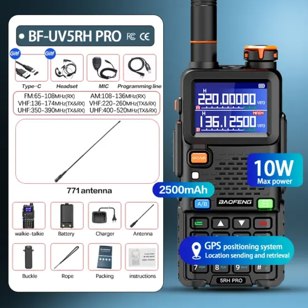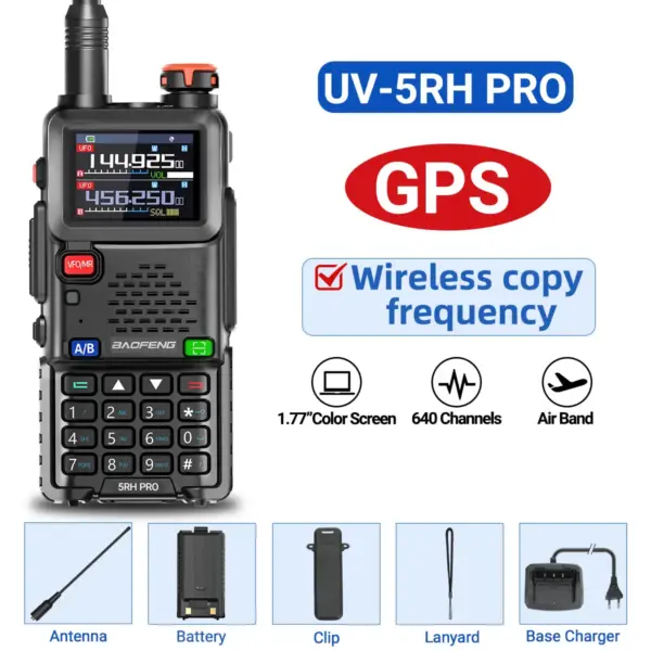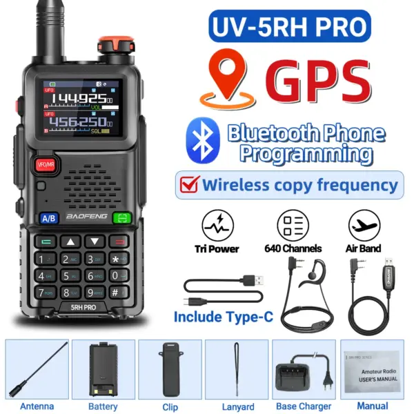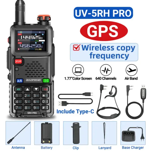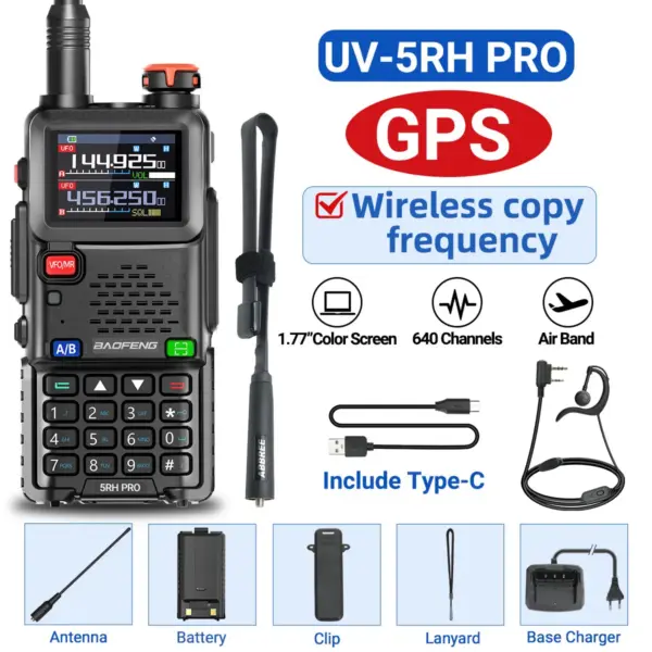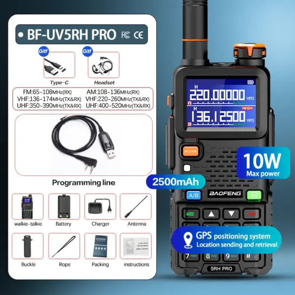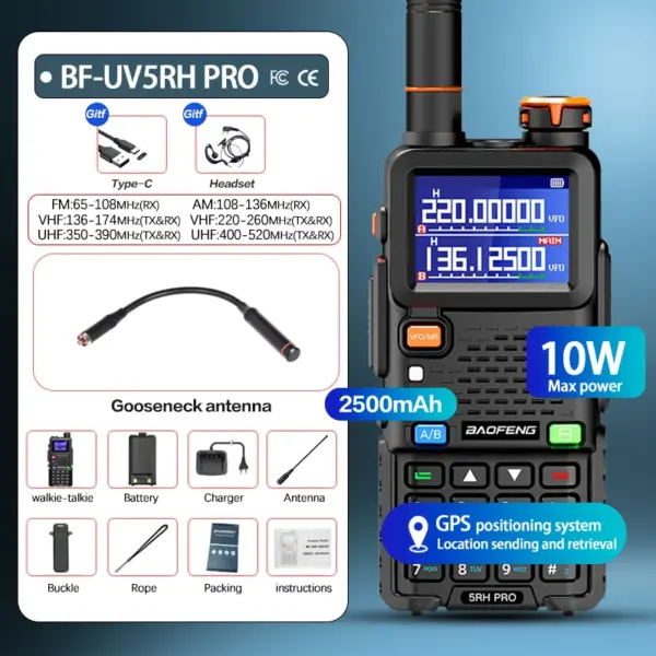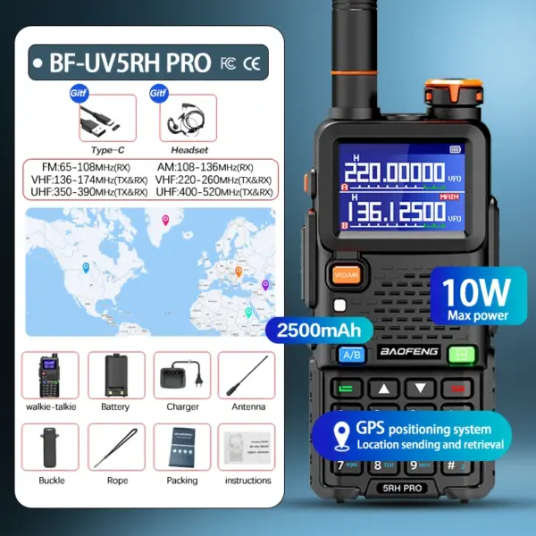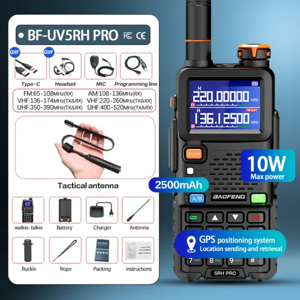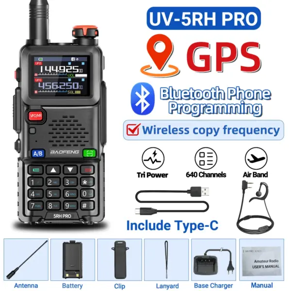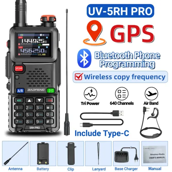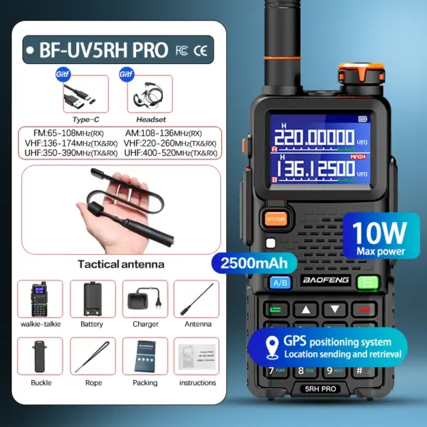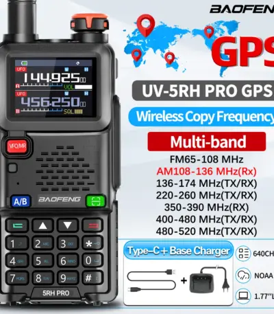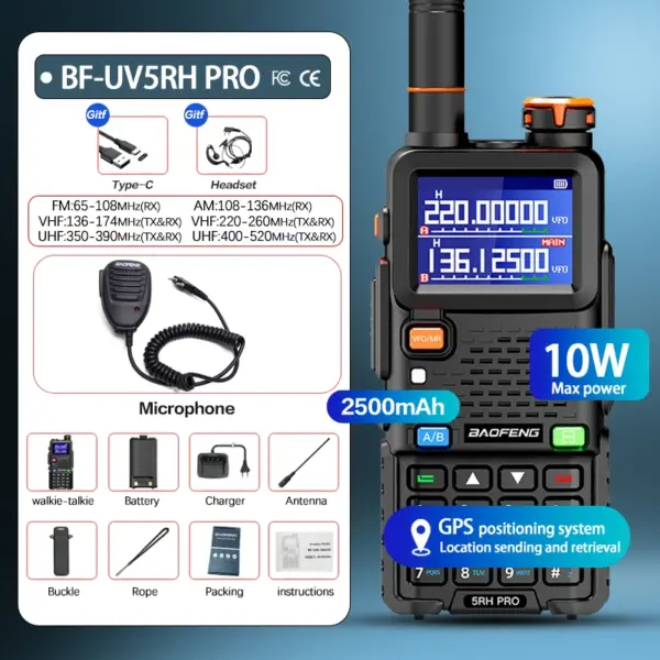 Baofeng UV-5RH PRO Walkie Talkie GPS Multi Band AM FM Type-C Wirless Copy Frequency Ham Two Way Long Range Communication Radios