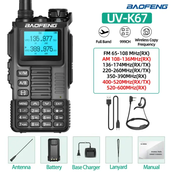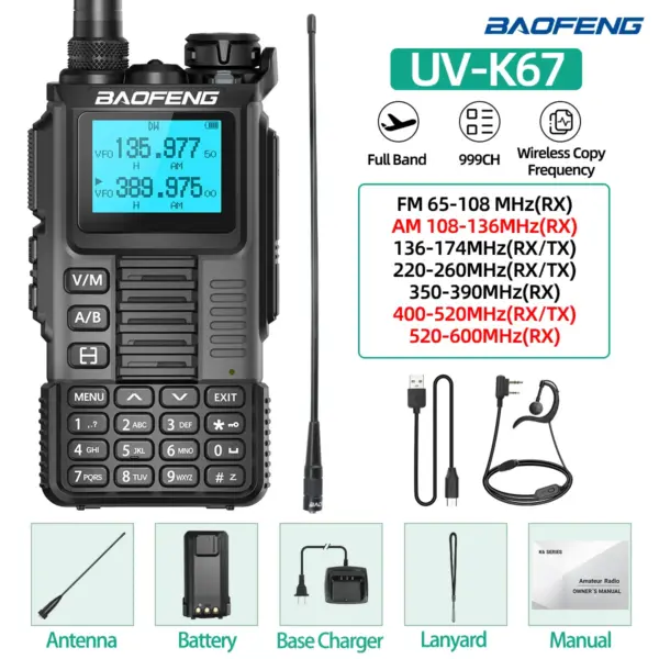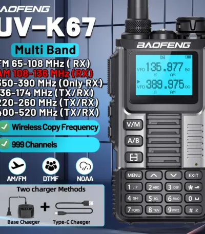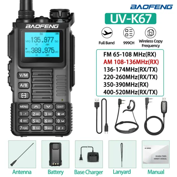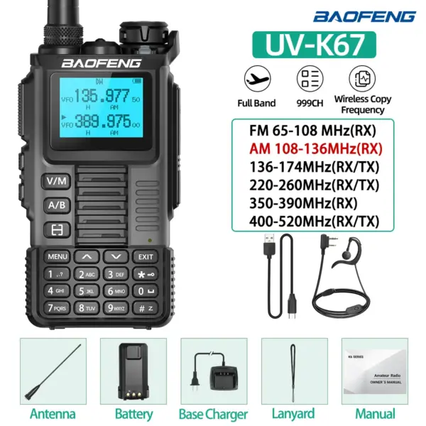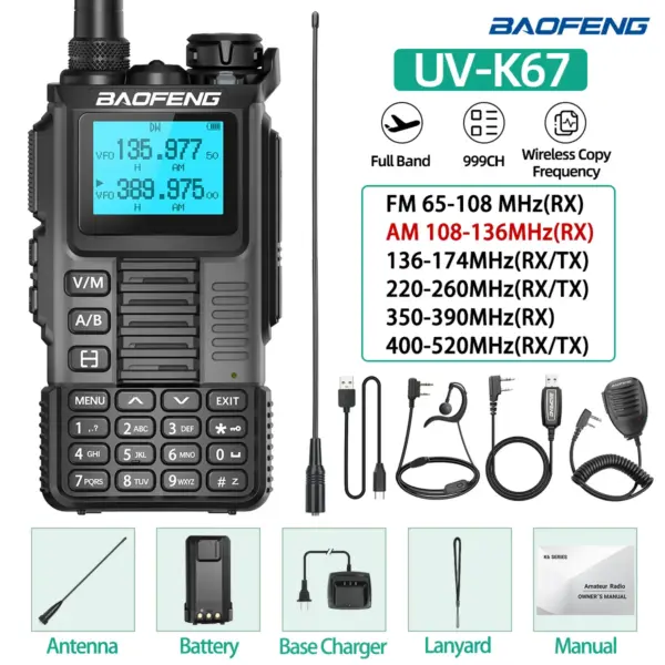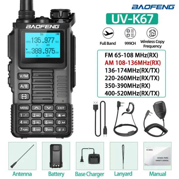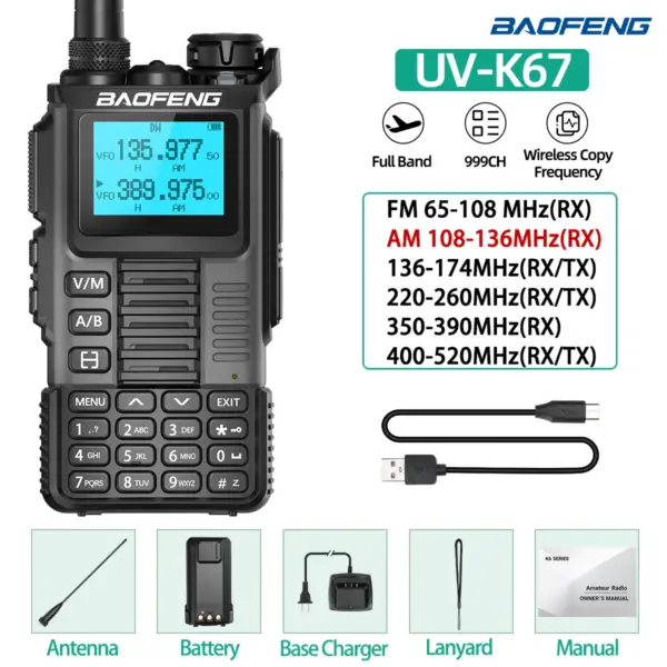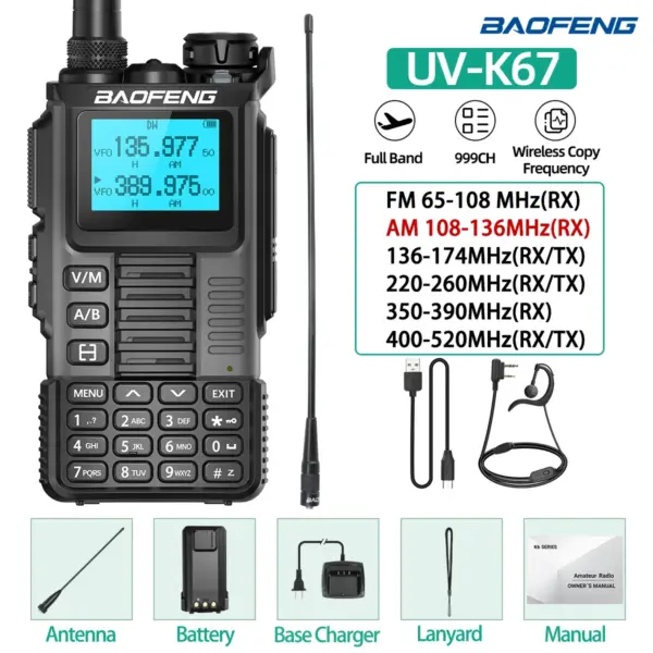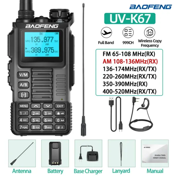Baofeng UV-K67 Walkie Talkie Long Range Air Band Wireless Copy Frequency High Power Transceiver NOAA Type-C Charger Ham Radio