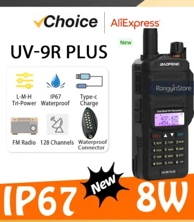 Baofeng UV-9R Plus 8W IP67Waterproof Walkie Talkie USB-C Dual Band Long Range Portable VHF/UHF Transceiver Hunting Two Way Radio