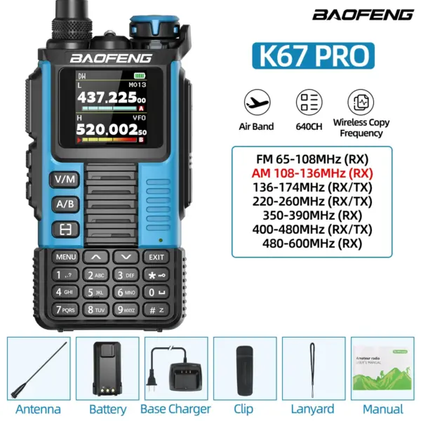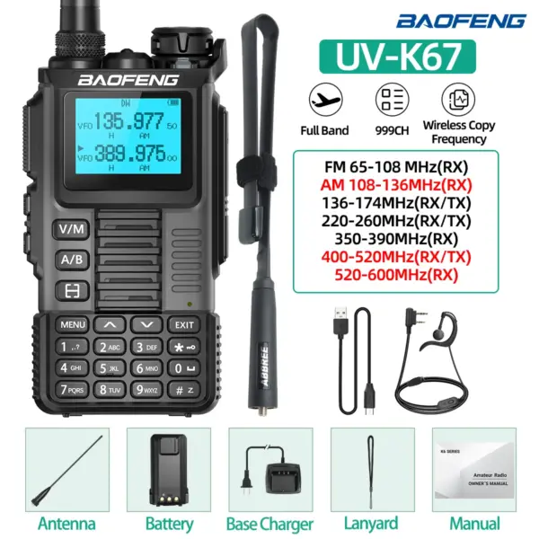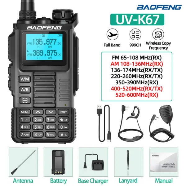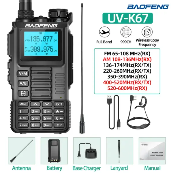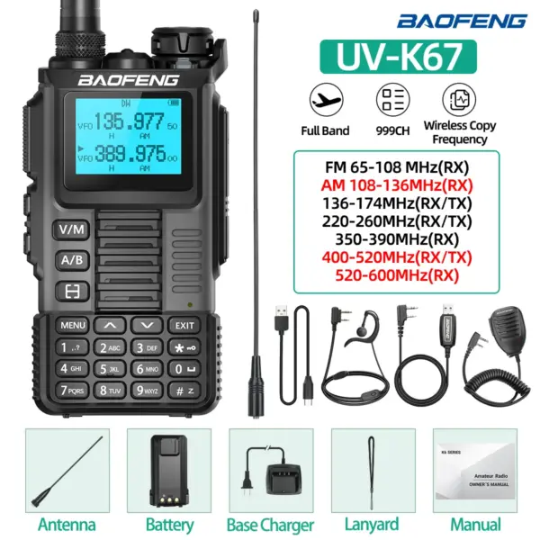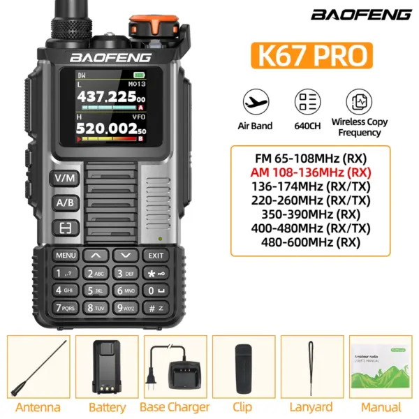 Baofeng UV-K67 PRO Walkie Talkie Multi Band Wireless Copy Frequency Long Range DTMF 640CH NOAA Type-C UV-5R Ham Two Way Radio