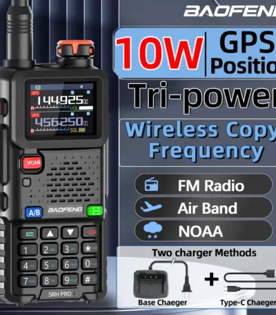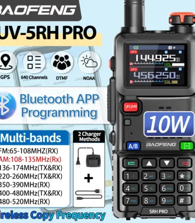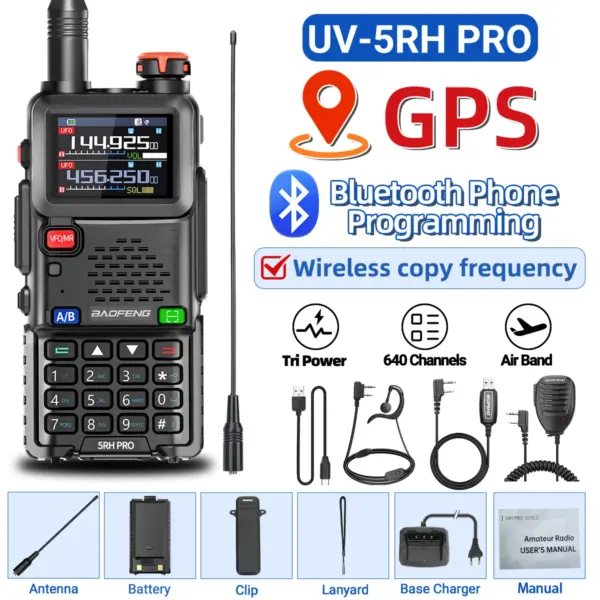 Baofeng UV-5RH PRO GPS Walkie Talkie Bluetooth Programming 10W Multi Band AM/FM Long Range Two Way Radio Shipping Cruise Travel