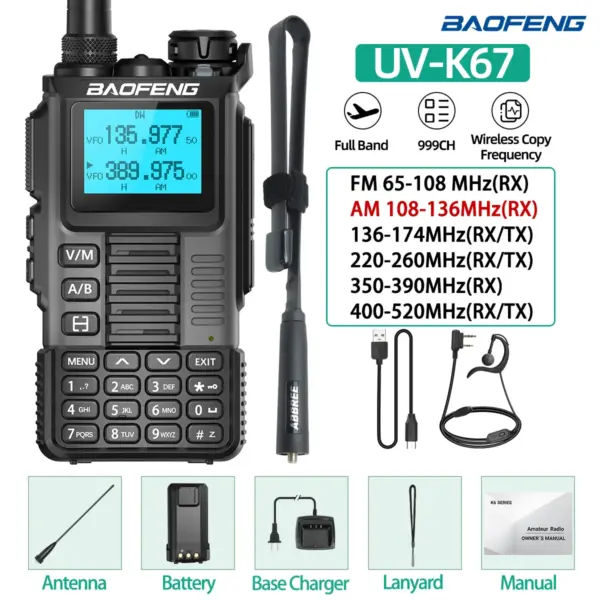 Baofeng UV-K67 Walkie Talkie Multi Band Wireless Copy Frequency 999CH Type-C DTMF NOAA UV-5R UV-K61 UV-K5(99) Two Way Ham Radio