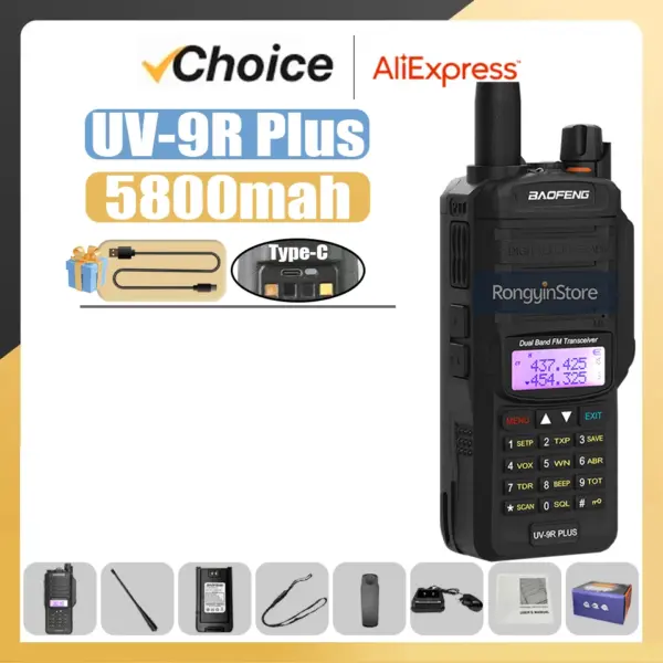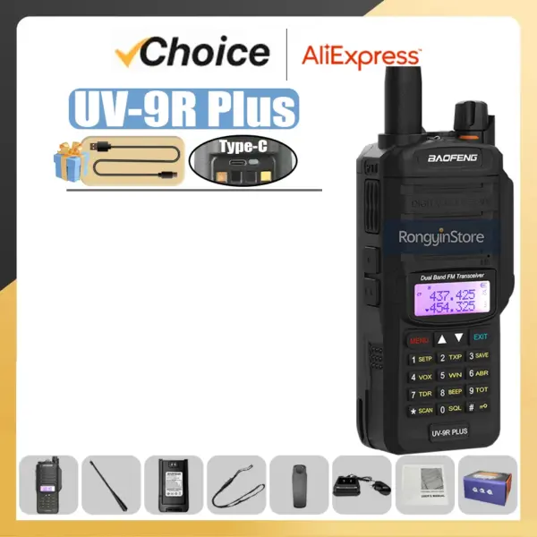 Baofeng UV-9R Pro IP68 Waterproof Walkie Talkie Dual Band VHF UHF Type-C Long Range UV-9R Plus Portable CB Ham Two Way Radio