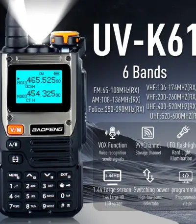 Baofeng UV-K61 Ham Radio Air Band Walkie Talkies 999 Channels Two Way Radio Station Aviation NOAA Police Marine (Upgrade UV-k6)