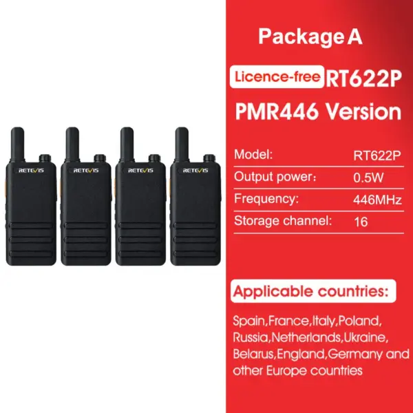 Mini Walkie Talkies Retevis RT622P Portable Walkie-talkies Type C Charge PMR446 FRS Two Way Radio Station for Hotel Restaurant