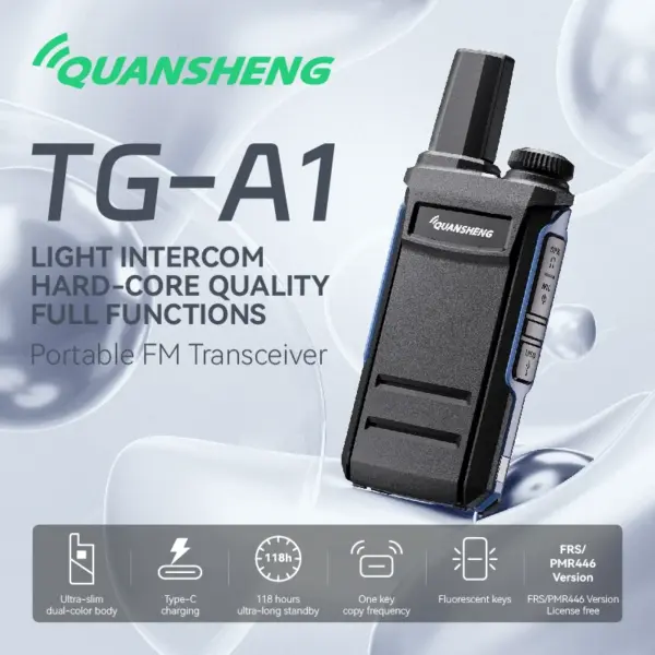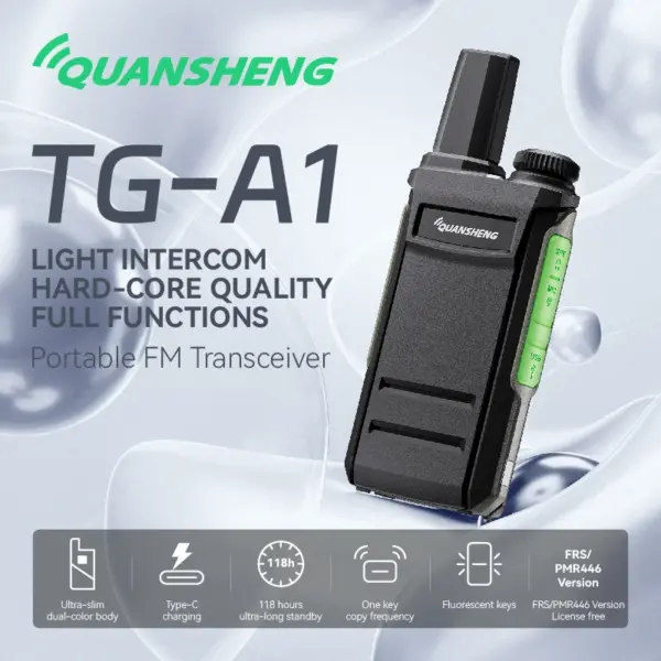 Quansheng ultra-thin walkie talkie A1 handheld pager one click frequency matching Type-C charging outdoor travel walkie talkie
