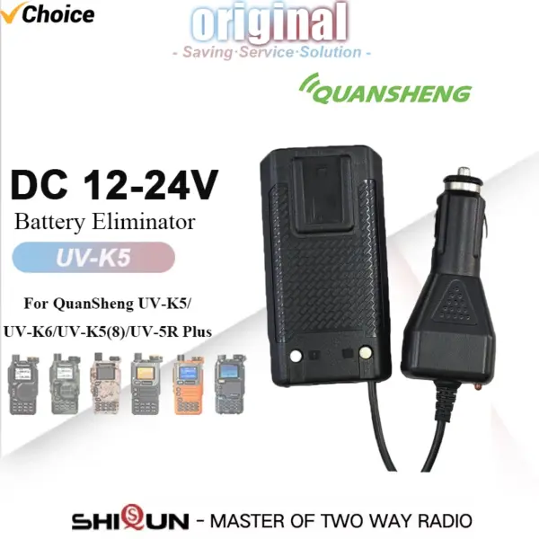 Quansheng UV-K5 Battery Eliminator UV-K6 UV-K58 UV-5R Plus Car Charger Original Two Way Radio Accessories 12V-24V Walkie Talkie