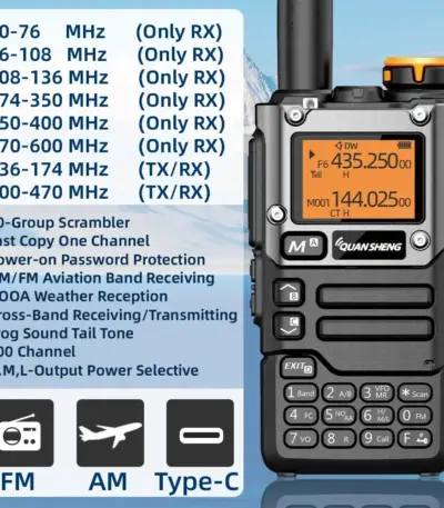 Quansheng 50-600MHz RX Walkie Talkie UV-K5 VHFUHF 136-174MHz 400-470MHz RX TX Both DTMF VOX FM Air Band Wireless Freq Copy Radio