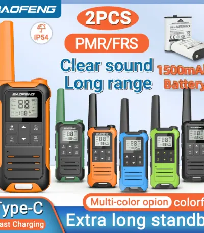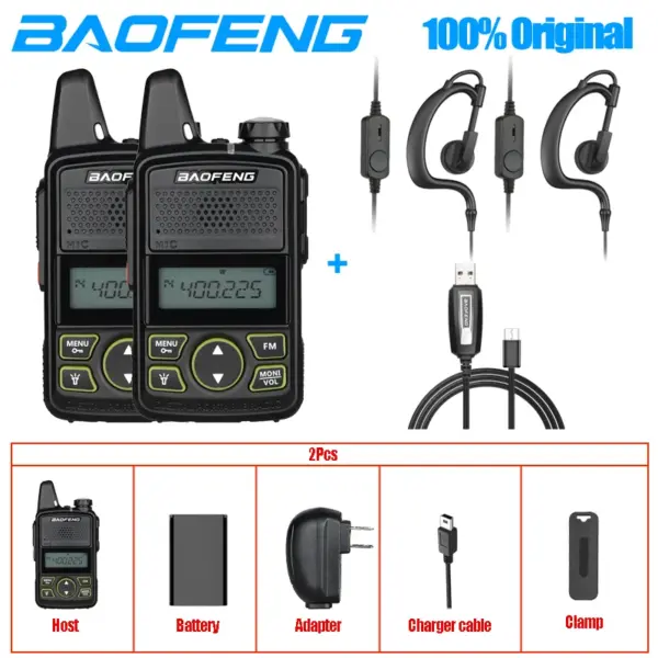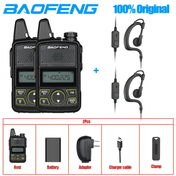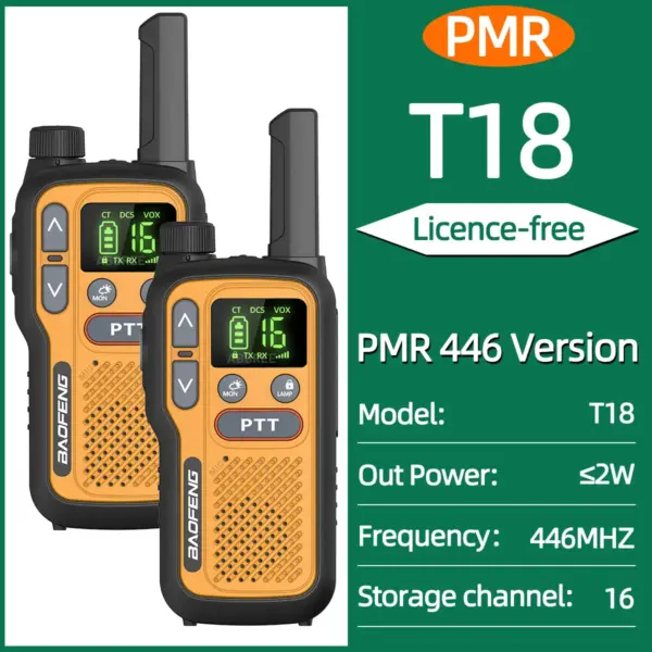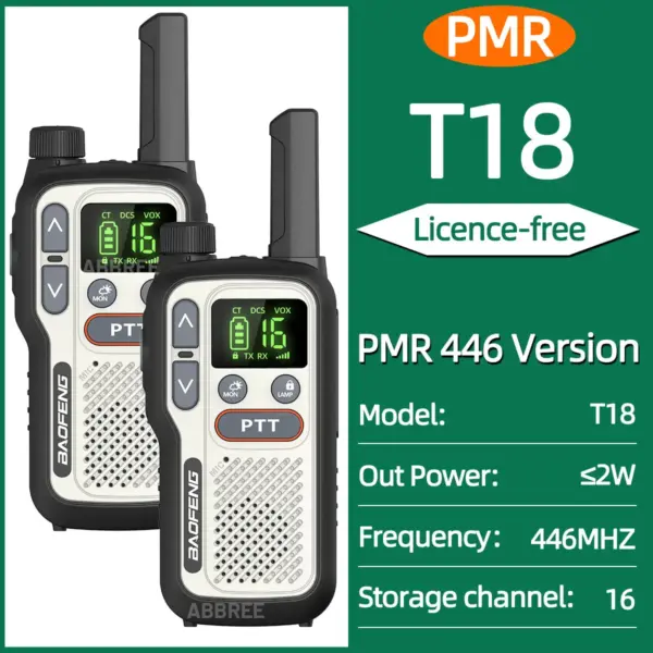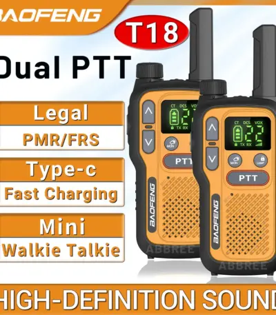 2PCS Baofeng BF-T18 Mini Dual PTT Walkie Talkie Portable PMR FRS License-Free Flashlight NOAA Long Range Support Type-C Charger
