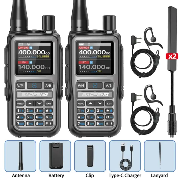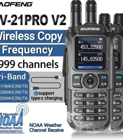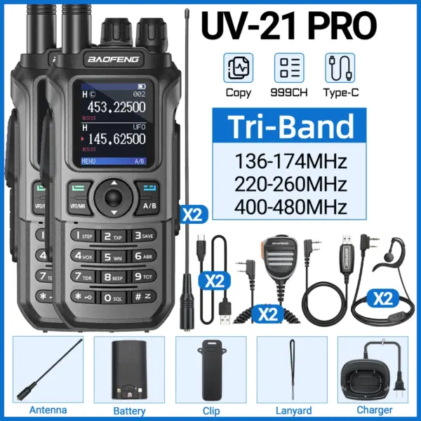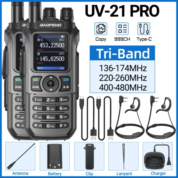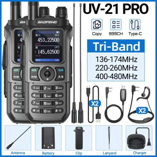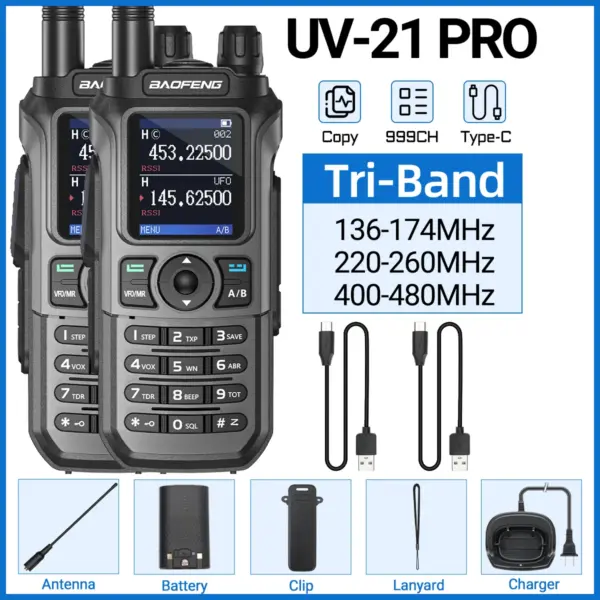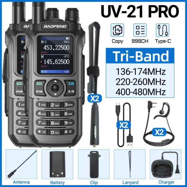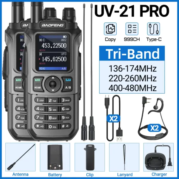 2PCS Baofeng UV-21 PRO V2 Walkie Talkie Long Range Wireless Copy Frequency Type-C Tri band Powerful Waterproof Two Way Radio