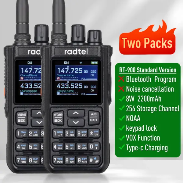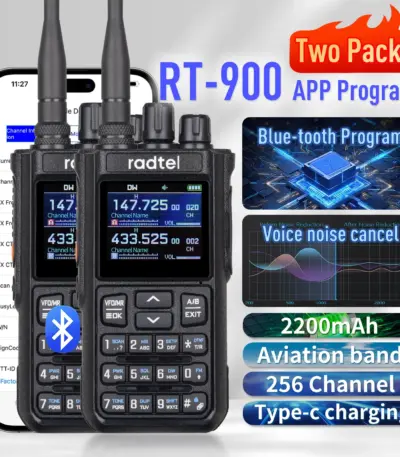 2pcs Radtel RT-900 8W Full band Ham Radio Walkie Talkie 256CH Air Band Two Way Radio Station Aviation NOAA Police Marine River