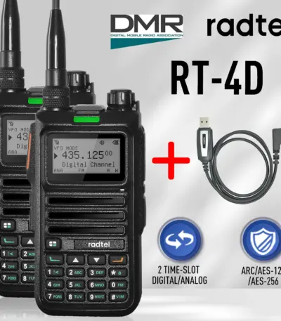 2pcs Radtel RT-4D DMR Digital Walkie Talkie Dual Mode Analog/Digital Radio Dual Time Slot 1024 Channels + Programming Cable