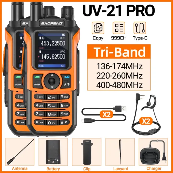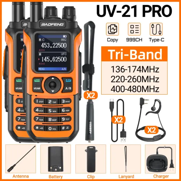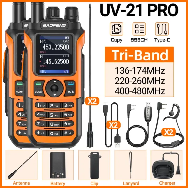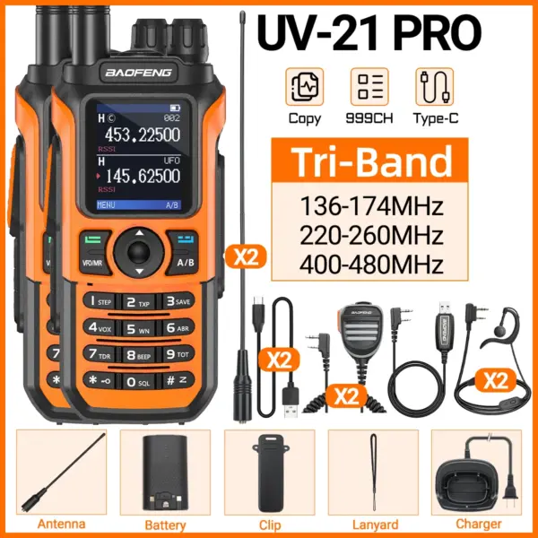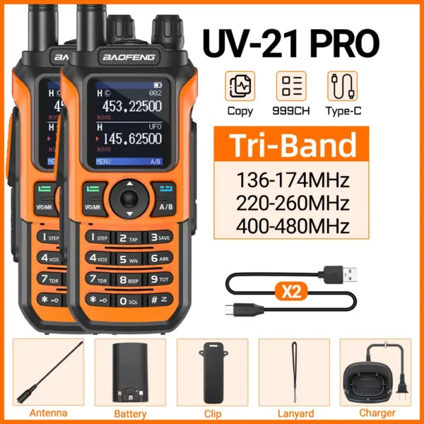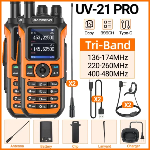 2x Baofeng UV-21 PRO Walkie Talkie Long Range Wireless Copy Frequency Type-C Charger Tri band Powerful Waterproof Two Way Radio