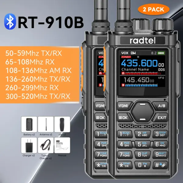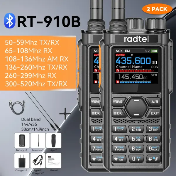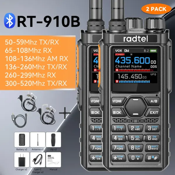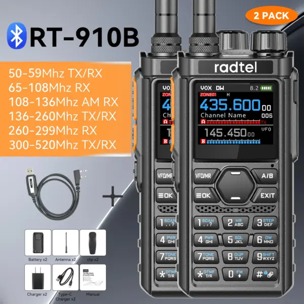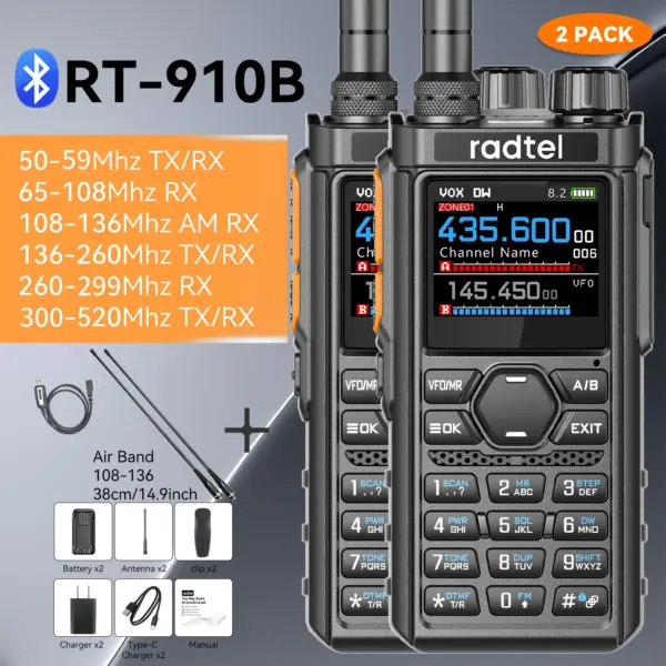 2pcs Radtel RT-910B Dual Band UHF VHF Amateur Ham Radio Walkie Talkie with AM FM Receiver 1024 Channels Copy Frequency
