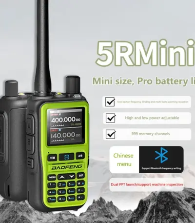 2x Baofeng 5R Mini Walkie Talkie Dual Bands Double PTT Keys USB-C Port NOAA Weather Channel Bluetooth App Programming HAM Radio
