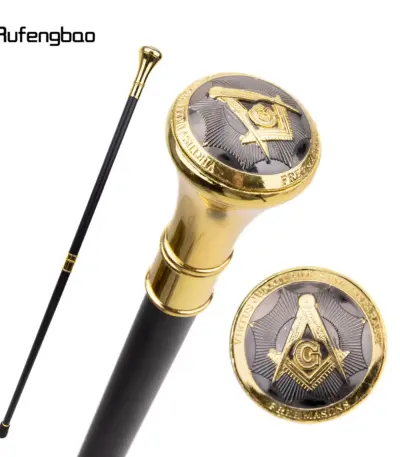 Golden Freemasonry Freemasons VG Totem Relief Single Joint Walking Stick with Hidden Plate Self Defense Cane Crosier 93cm