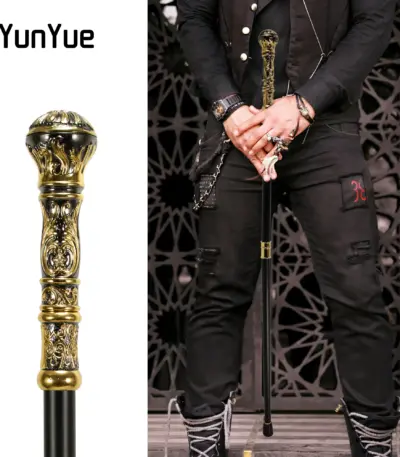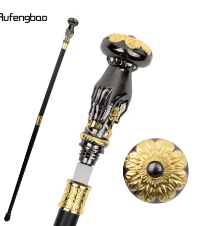 Golden Black Hand Hold Flower Handle Walking Stick with Hidden Plate Self Defense Fashion Cane Plate Cosplay Crosier Stick 93cm