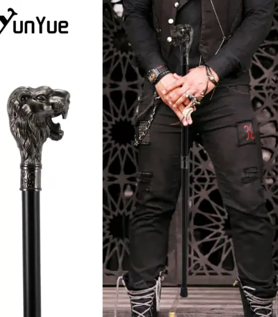 Silver Lion King Head Fashion Walking Stick for Party Decorative Walking Cane Gentleman Elegant Cosplay Cane Crosier Knob 93cm