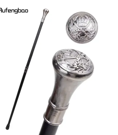Silver Wolf Head Flower Walking Stick with Hidden Plate Self Defense Fashion Cane Plate Cosplay Crosier Stick 93cm