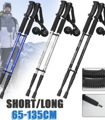 2pcs Outdoor Trekking Poles Walking Stick Retractable Climbing Crutch Aluminium Alloy Walking Cane Hiking Alpenstock 63-135cm