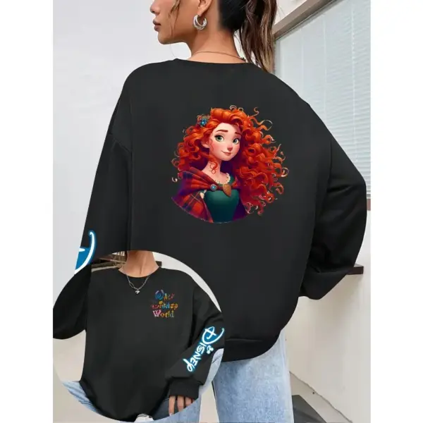 2025 Autumn/Winter Disney Women’s Merida Brave Girl Red Haired Princess Design Comfortable Long Sleeve Round Neck Hoodie